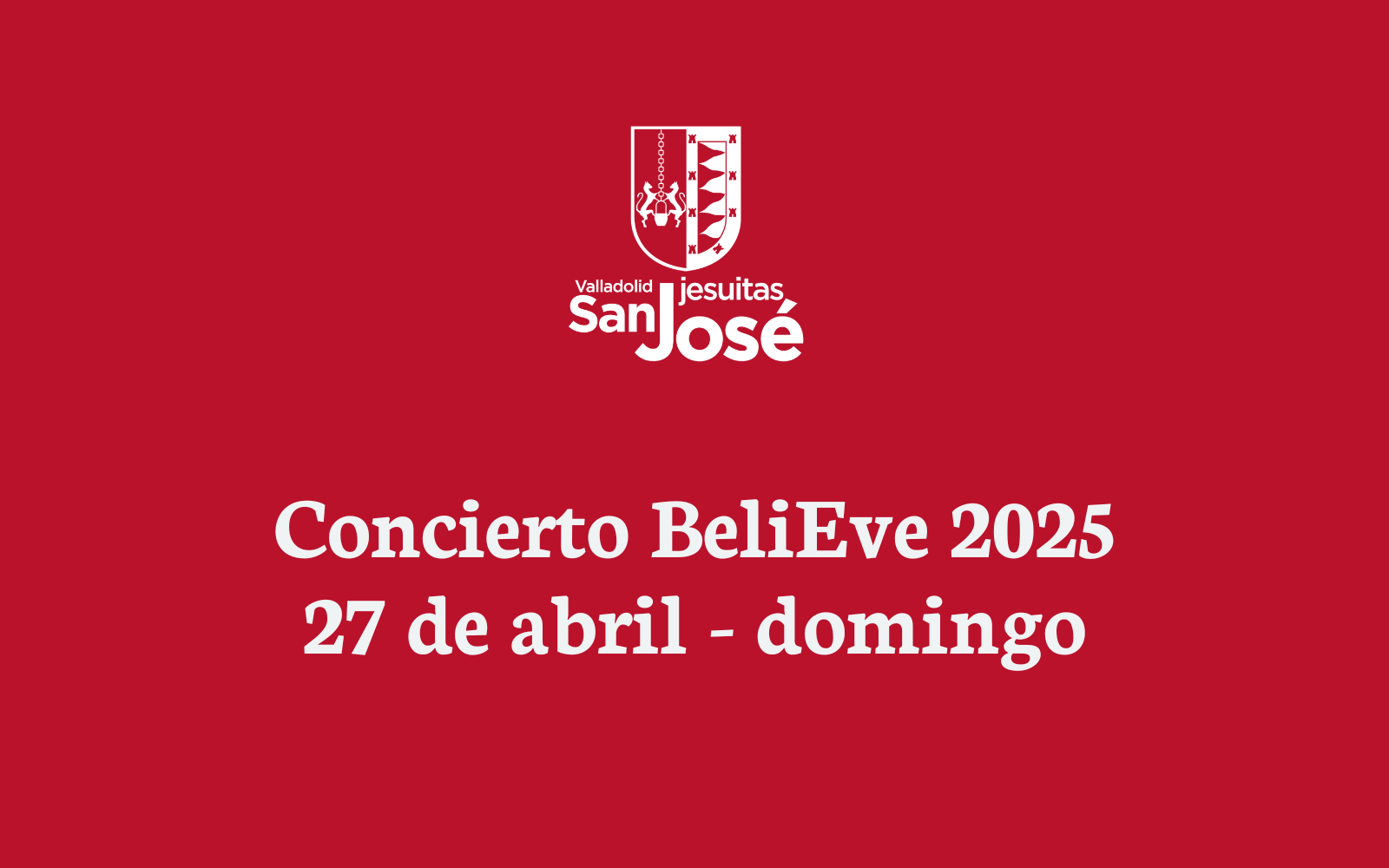 ¡Ya tenemos fecha para el concierto solidario de BeliEve! Será el próximo 27 de abril, domingo, a las 18.00h en la Iglesia del Corazón de Jesús, en la calle Ruiz Hernández.