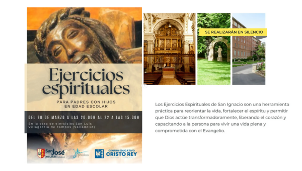 Os invitamos a participar de la experiencia pastoral más especial que podemos ofreceros: los Ejercicios Espirituales de San Ignacio; una herramienta práctica para reorientar la vida, fortalecer el espíritu y permitir que Dios actúe transformadoramente, liberando el corazón y capacitando a la persona para vivir una vida plena y comprometida con el Evangelio.