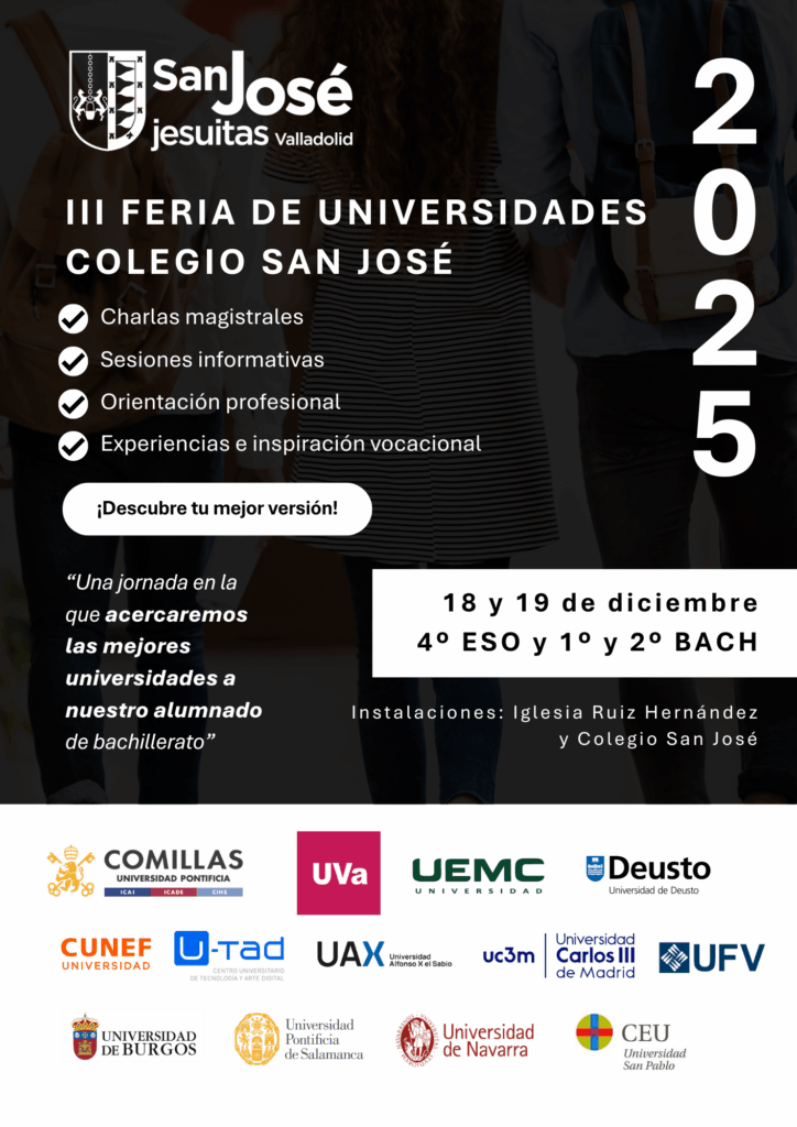 Ya es oficial el cartel de la tercera edición de la Feria de Universidades y no podemos tener mejores noticias. Seguimos sumando universidades de primer nivel y ampliamos la programación con un día más de conferencias, que por primera vez incluyen también al alumnado de 4º de ESO.