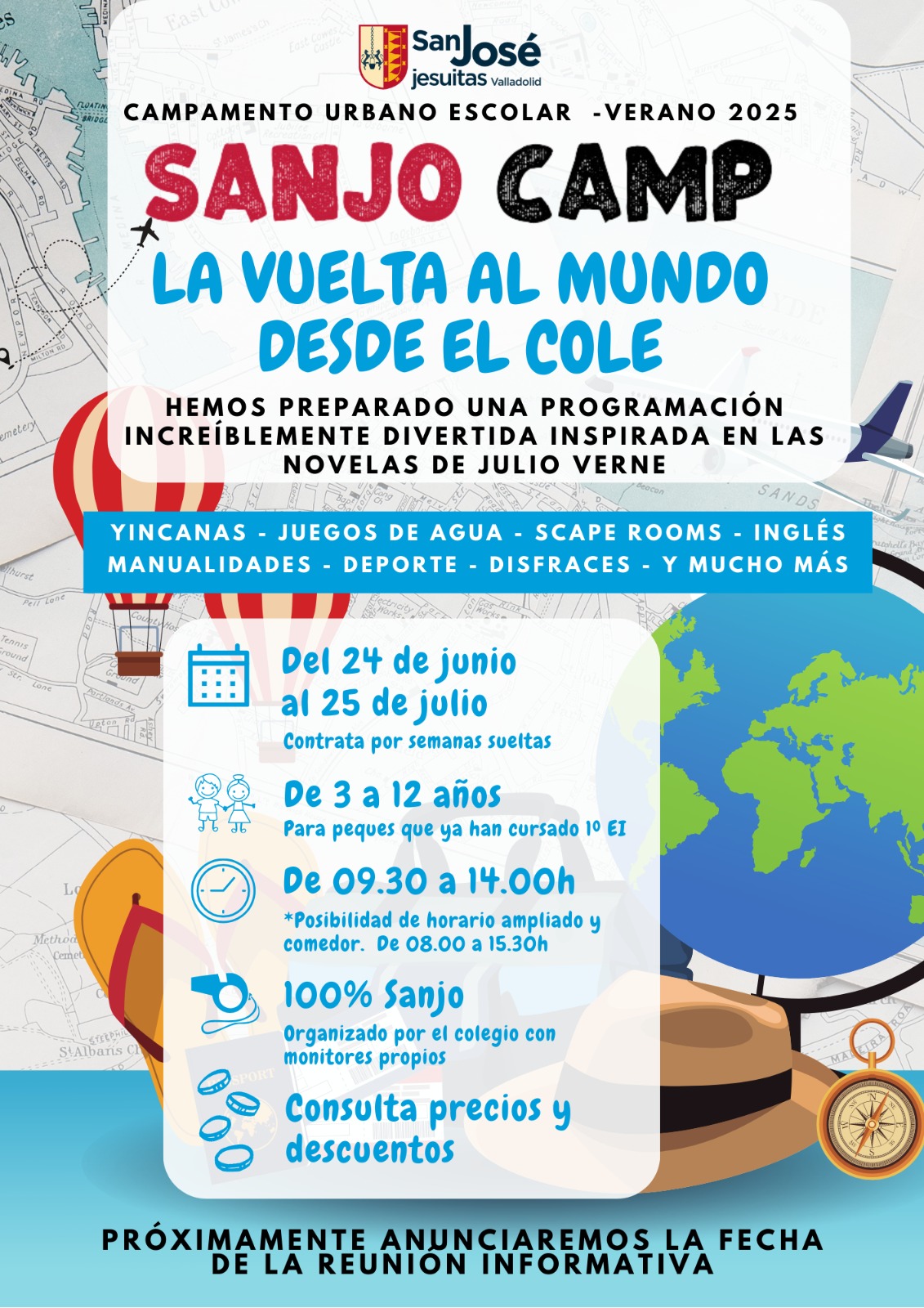 Para esta nueva edición hemos planteado una temática global: un viaje alrededor del mundo a través del juego inspirándonos en las novelas de Julio Verne. Este tema será el paraguas general de contenido para la temática de cada una de las 5 semanas del campamento, que como otros años pueden contratarse de forma independiente.